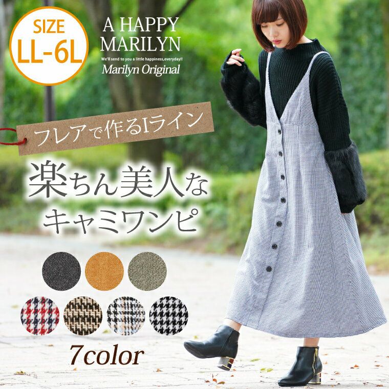 他の画像を見る オリジナル LL 3L 4L 5L 6L 秋 秋物 秋冬 選べる3素材 ピーチ グレンチェック ガンクラブチェック ボタンデザイン フレア キャミワンピ | 大きいサイズの通販ならハッピーマリリン 価格 ¥ 3,045 税込 4.00 在庫切れ お気に入りに登録する