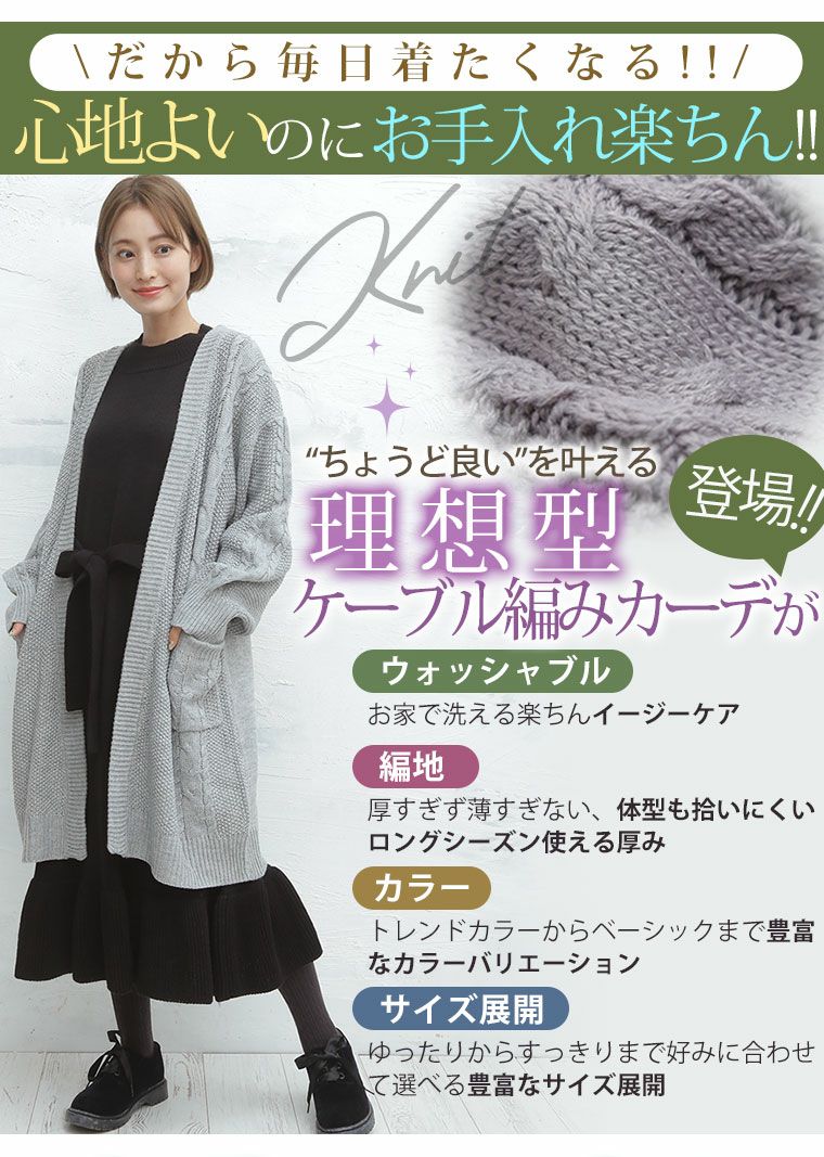 他の画像を見る オリジナル アウター ロングカーディガン LL 3L 4L 5L 6L ゆったり お腹 お尻 腰周り 新色追加!!洗える ウォッシャブル アクリル バルキー ケーブル 長袖 ロング ニットカーディガン | 大きいサイズの通販ならハッピーマリリン 価格 ¥ 3,290 税込 4.20 在庫切れ お気に入りに登録する