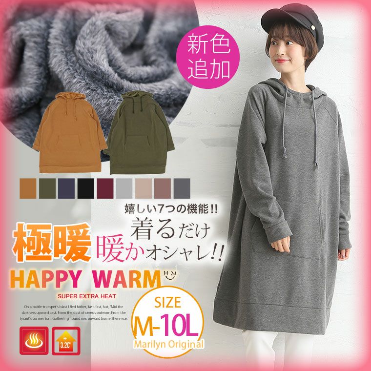 他の画像を見る オリジナル ワンピ LL 3L 4L 5L 6L 7L 8L 9L 10L お腹 腰周り お尻 胸周り 新色追加!! HAPPY WARM お肌に優しい 嬉しい7つの機能/発熱/保温・保湿/吸汗速乾!! HEAT 裏シャギー 長袖 パーカー ワンピース | 大きいサイズの通販ならハッピーマリリン 価格 ¥ 2,490 税込 4.35 在庫切れ お気に入りに登録する