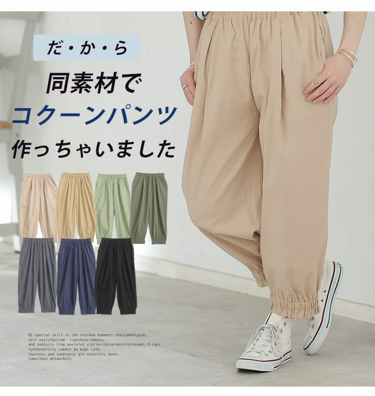他の画像を見る オリジナル ボトムス テーパードパンツ スラウチ LL 3L 4L 5L 6L 7L 8L 夏 夏物 夏服 夏用 ぽっちゃり ゆったり かわいい おしゃれ カジュアル ナチュラル 新色追加!! さら軽ストレッチ!! 裾ギャザー コクーンパンツ【ストレッチ】【ウェストゴム】 | 大きいサイズの通販ならハッピーマリリン 価格 ¥ 3,790 税込 4.49 在庫切れ お気に入りに登録する
