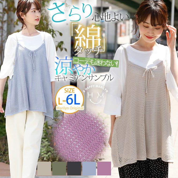 他の画像を見る オリジナル トップス カットソー Tシャツ キャミソール LL 3L 4L 5L 6L 夏 夏物 夏服 夏用 ぽっちゃり ゆったり お腹 胸周り 二の腕カバー さらりと心地よい 涼やか 透かし編み キャミ アンサンブル (リボン) | 大きいサイズの通販ならハッピーマリリン 価格 ¥ 2,990 税込 4.18 在庫切れ お気に入りに登録する