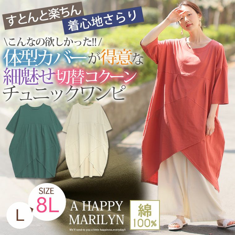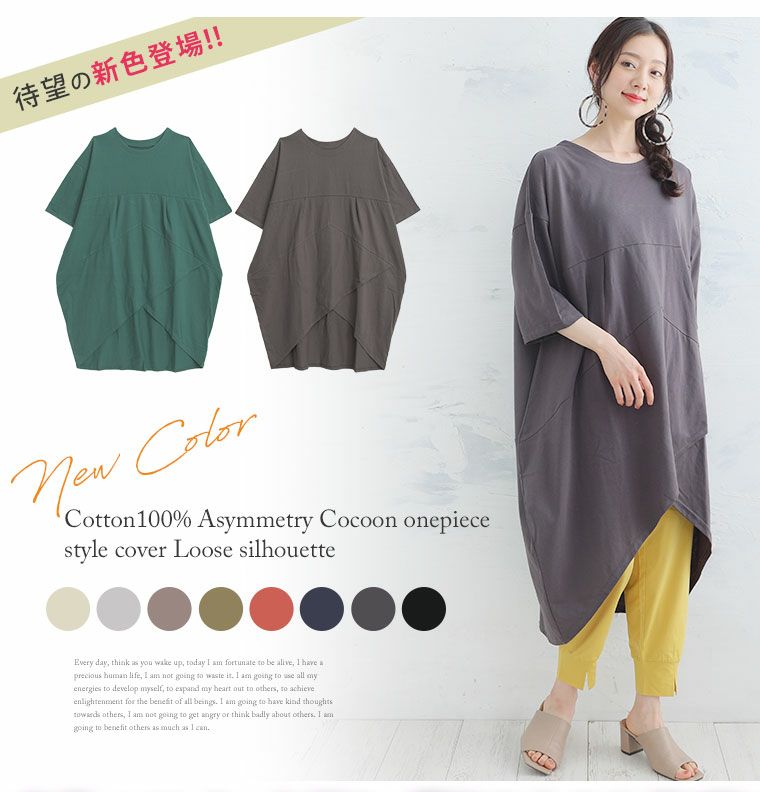 他の画像を見る オリジナル ワンピ LL 3L 4L 5L 6L 7L 8L 夏 夏物 夏服 夏用 ゆったり お腹 胸周り お尻 新色追加!! 綿100% ストンと楽ちん 着心地さらり 体型カバーが得意な コットン アシメ コクーンチュニック ワンピース | 大きいサイズの通販ならハッピーマリリン 価格 ¥ 2,790 税込 4.20 在庫切れ お気に入りに登録する