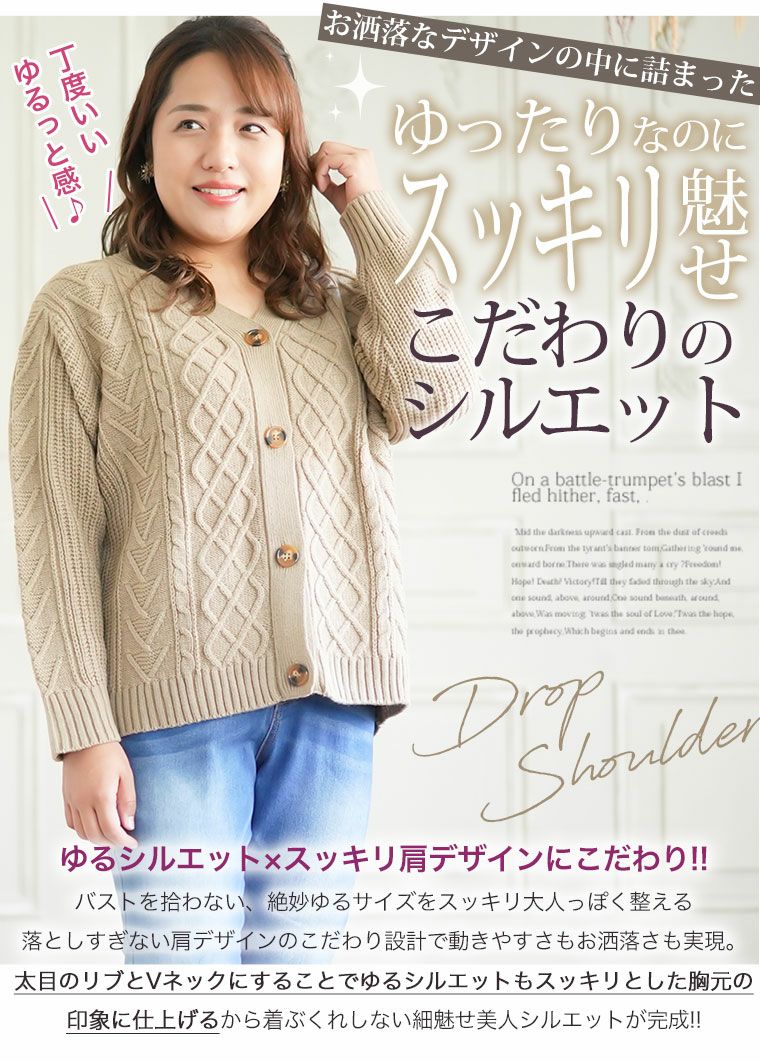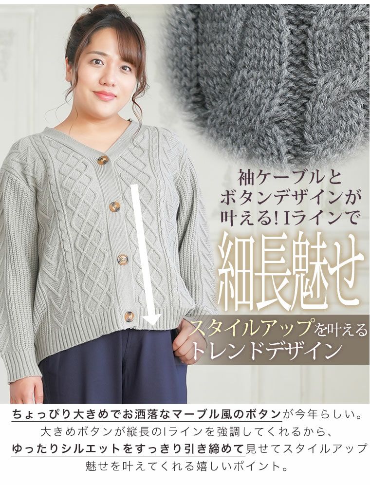 他の画像を見る オリジナル トップス カーデ 羽織り LL 3L 4L 5L 6L 冬 冬物 冬服 ぽっちゃり ゆったり かわいい おしゃれ カジュアル ナチュラル プラスサイズ 【Hinaさんコラボ】 ケーブル柄 ニットカーディガン【骨格ナチュラル】 | 大きいサイズの通販ならハッピーマリリン 価格 ¥ 3,990 税込 3.75 お気に入りに登録する