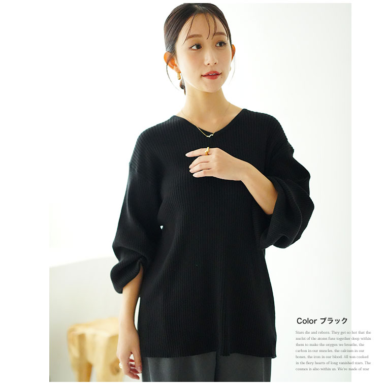 ぽわん袖で二の腕を気にせず着られる上品さ大人の華奢魅せセーター