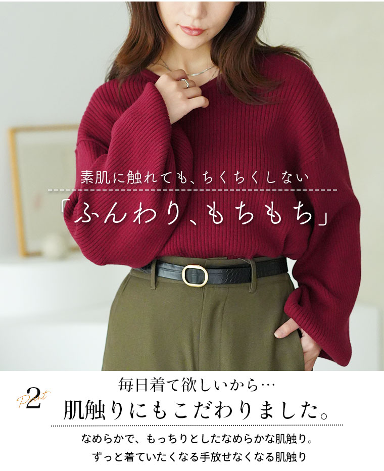 リブニット=ピタピタを解消した、ゆったりなのに華奢魅せを叶える