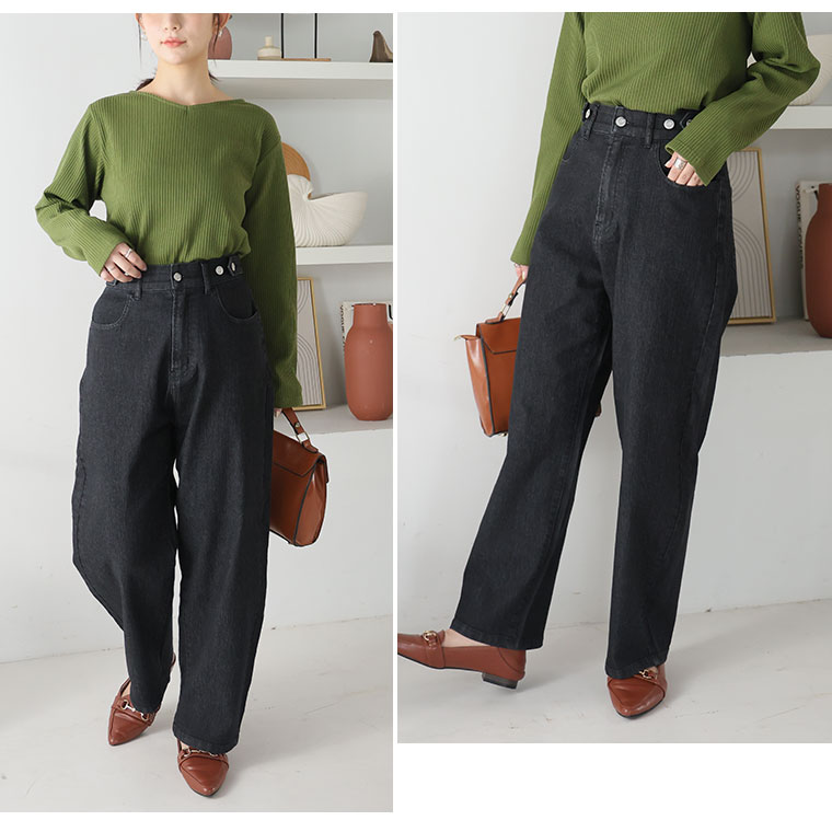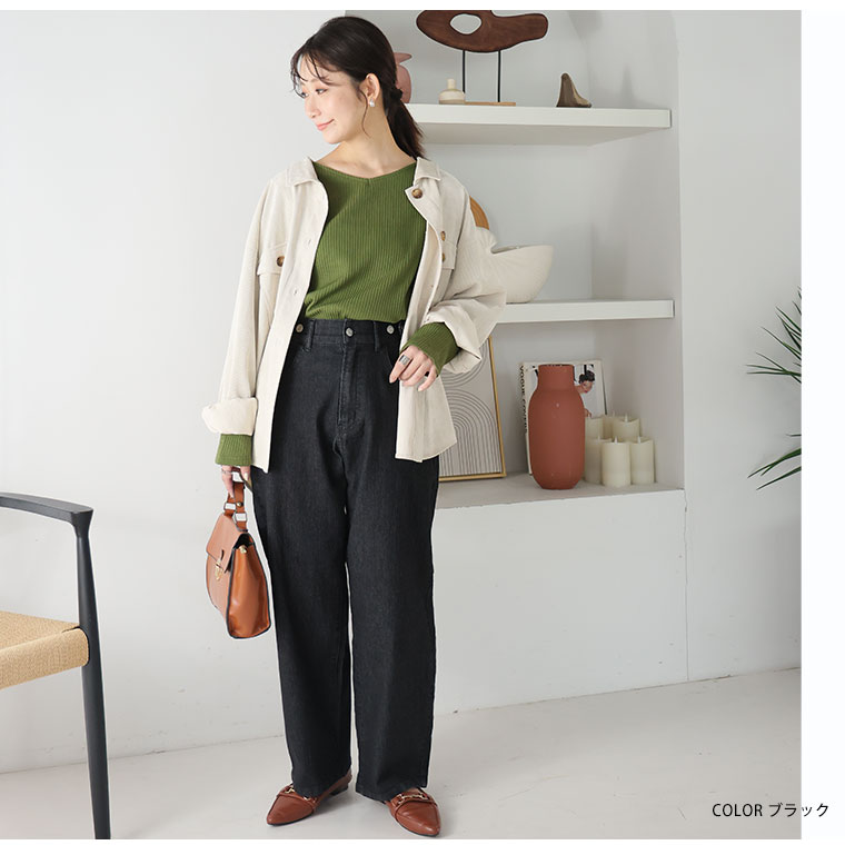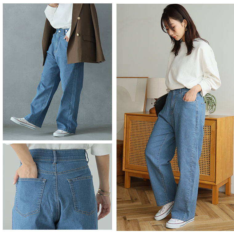 ハイウエストでスッキリ 程よいワイドで脚のラインを拾わない