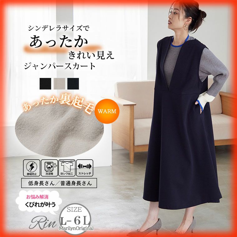 他の画像を見る オリジナル ジャンパースカート LL 3L 4L 5L 6L 秋 冬 あったか オフィスカジュアル オケージョン Rin 選べる丈 着ぶくれしない 裏起毛 くびれが叶う カーブネック ジャンスカ | 大きいサイズの通販ならハッピーマリリン 小柄さん丈有 価格 ¥ 3,690 税込 4.20 お気に入りに登録する