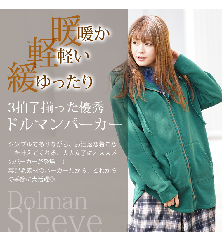 ゆったり楽ちん裏起毛で冬スタイルの完成!ドルマンパーカー