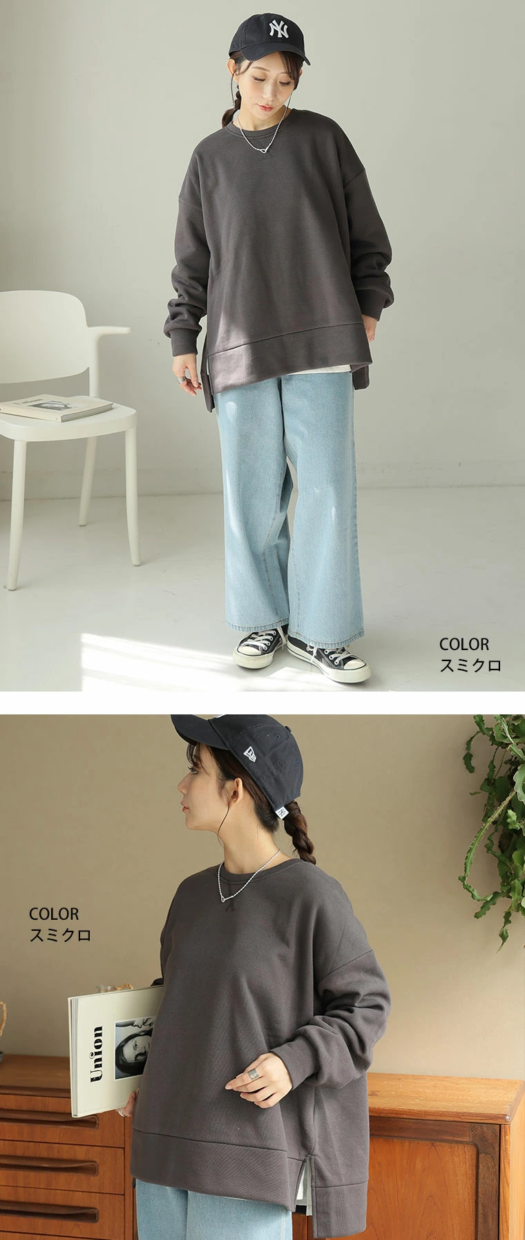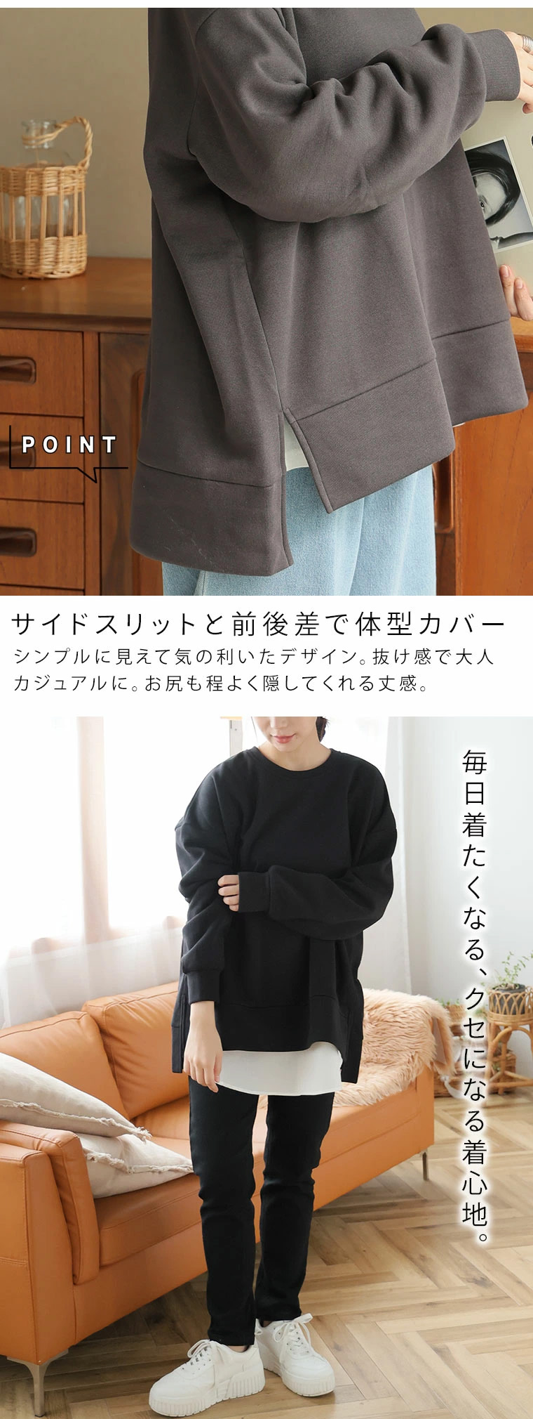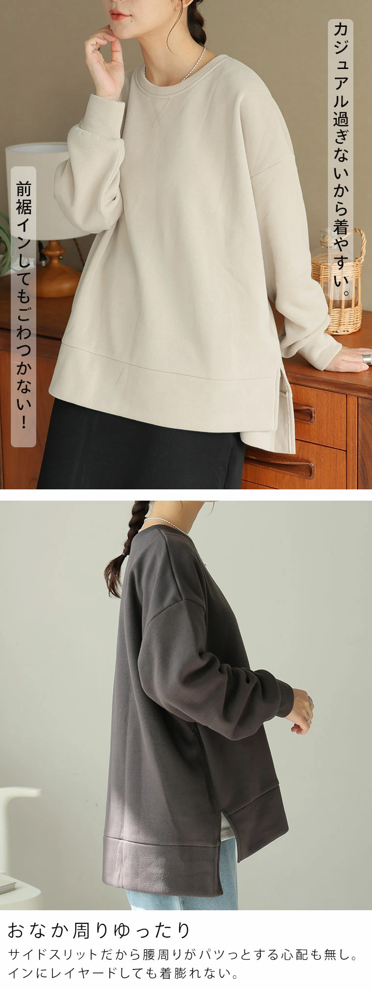 大きいサイズ ハピぽか 裏起毛 サイド 深スリット トレーナー・毛玉になりにくい
