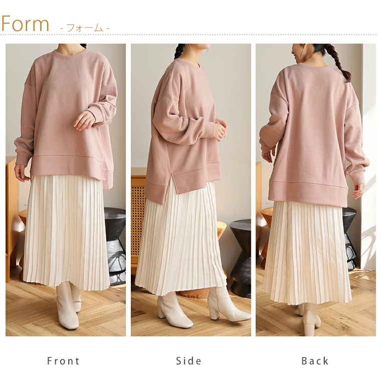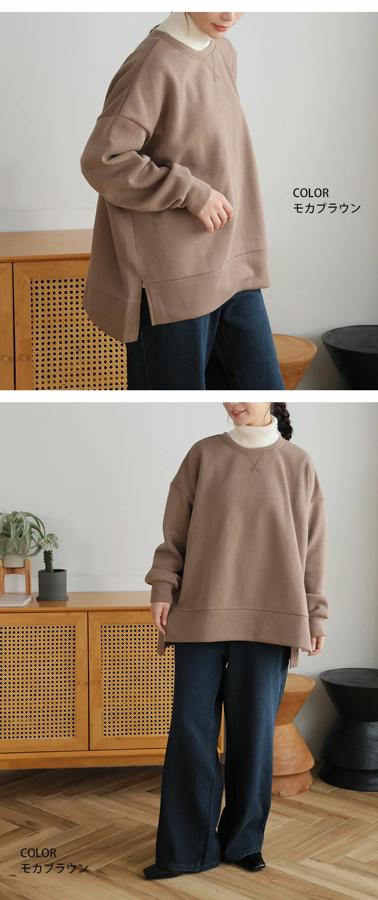 4. 大きいサイズ ハピぽか 裏起毛 サイド 深スリット トレーナー・毛玉になりにくい