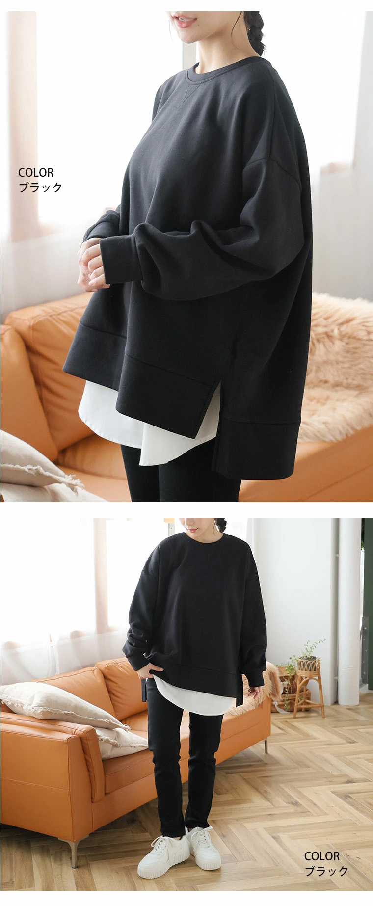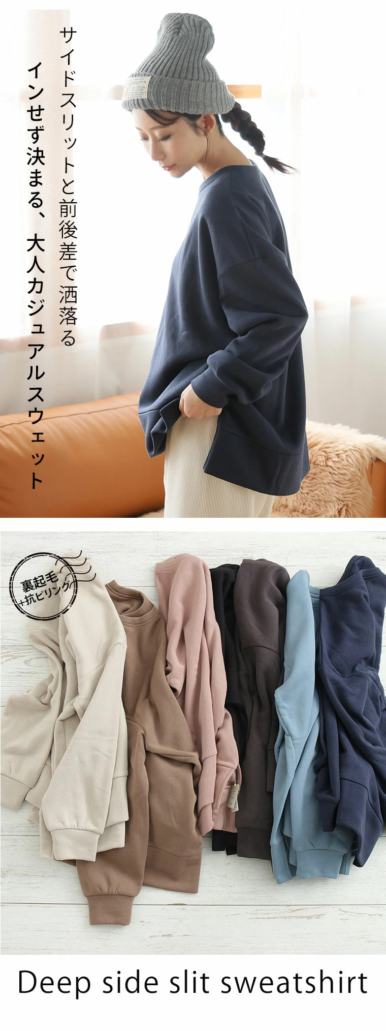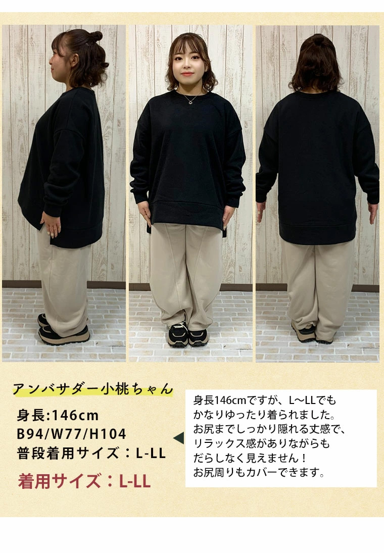 6. 大きいサイズ ハピぽか 裏起毛 サイド 深スリット トレーナー・毛玉になりにくい