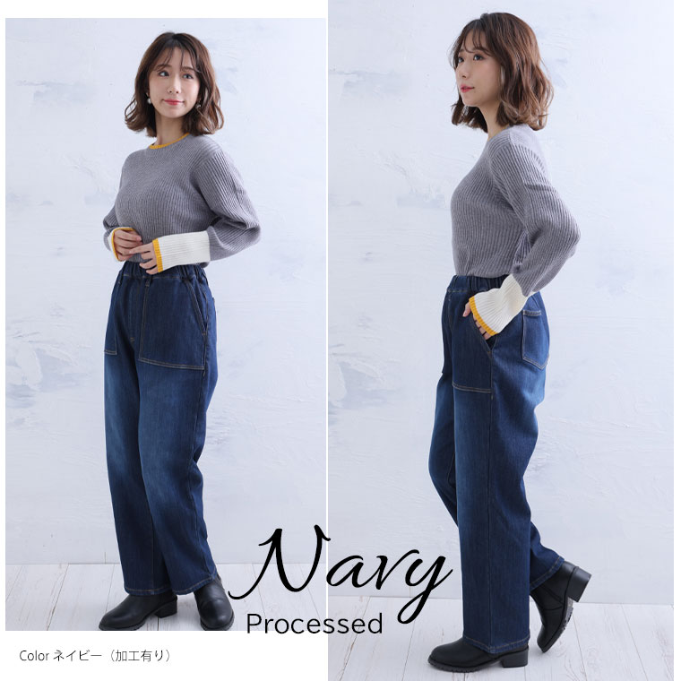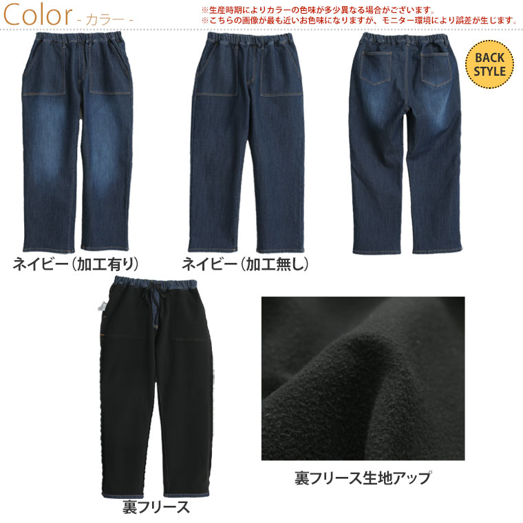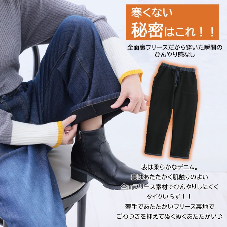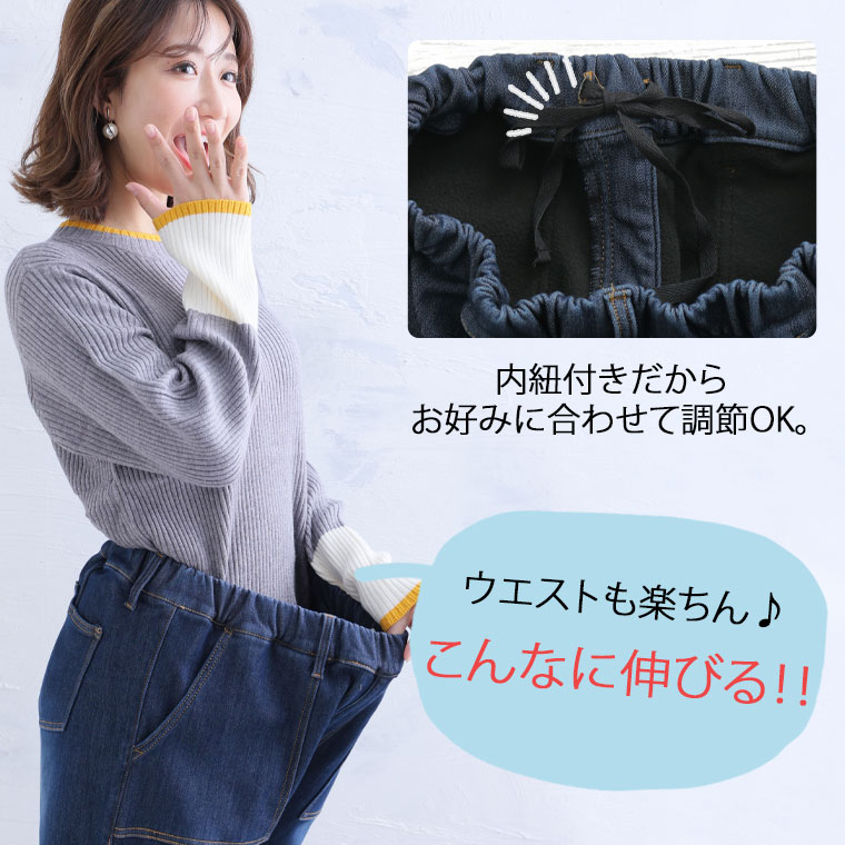 3. 大きいサイズ 防寒 暖か 裏フリース 美脚 ベイカー デニムパンツ【ストレッチ】【ウェストゴム】