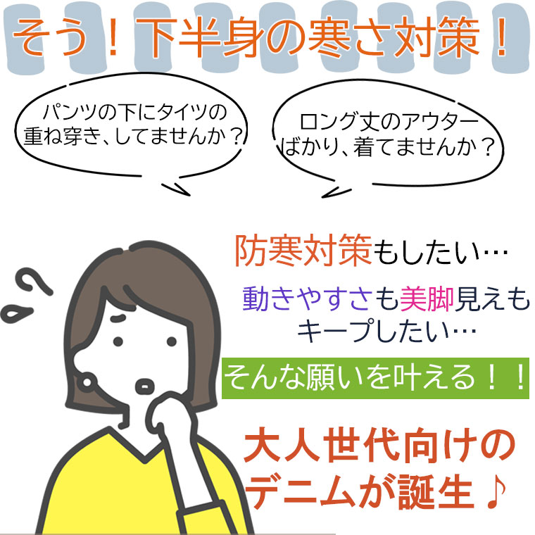 暖かいのに美脚!大人世代向けデニム
