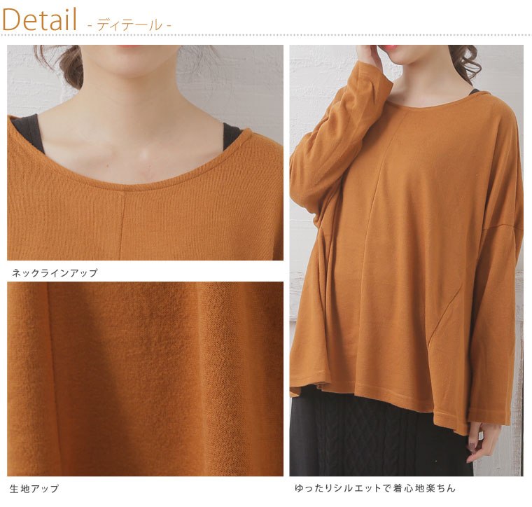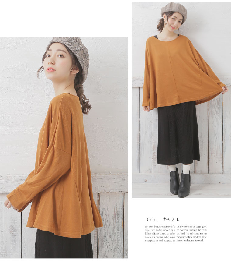 薄起毛でほっこりコーディネート。着痩せ効果のある斜め切替がポイント!!