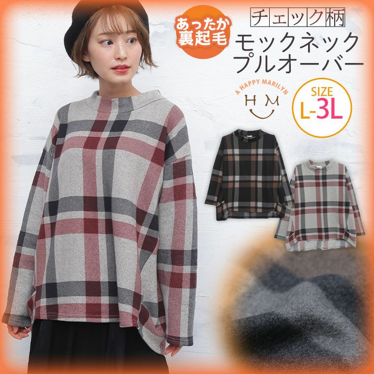 モックネックがかわいい チェック柄プルオーバー
