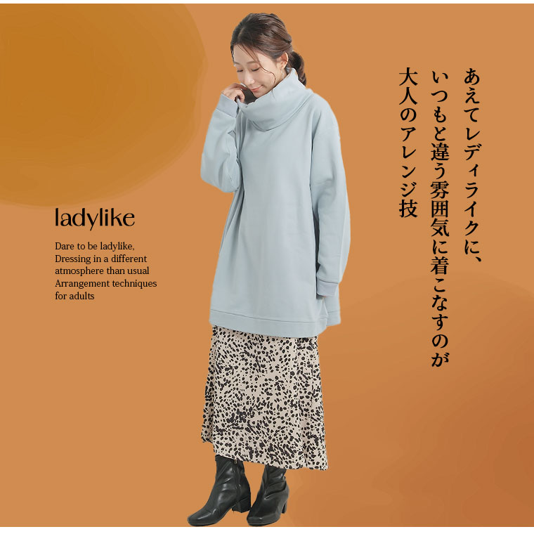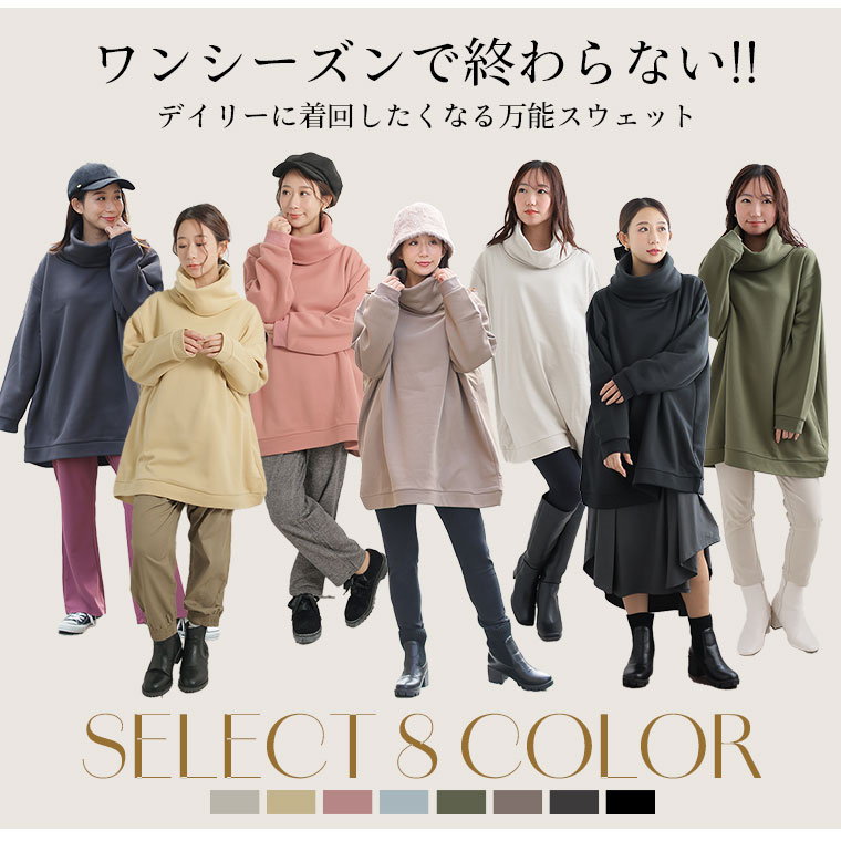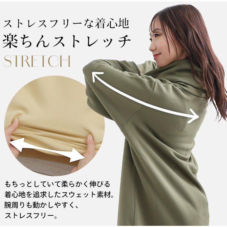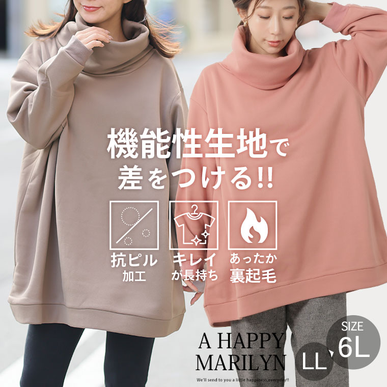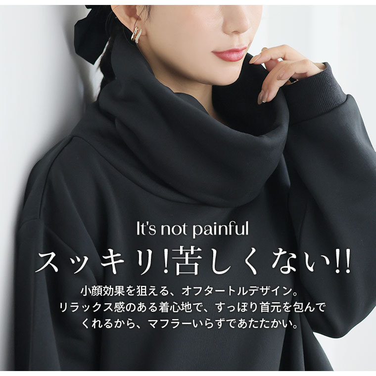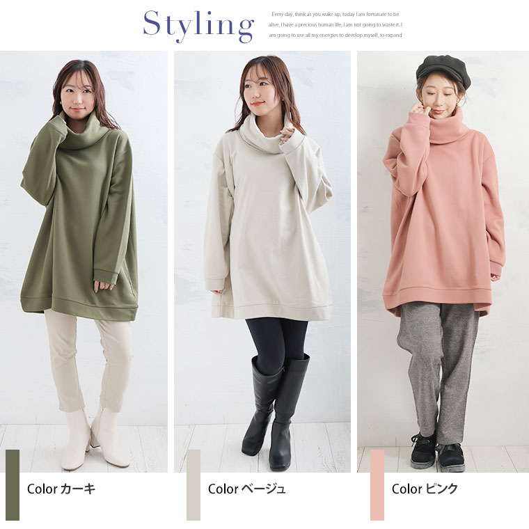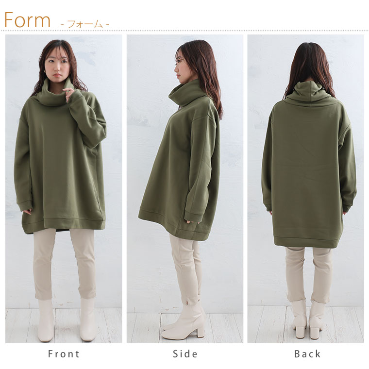 包み込まれる優しいあたたかな着心地の、裏起毛素材。ゆるシルエットで体型カバー!