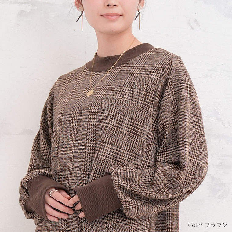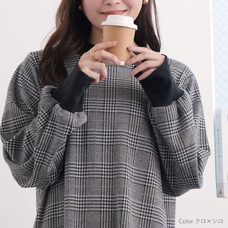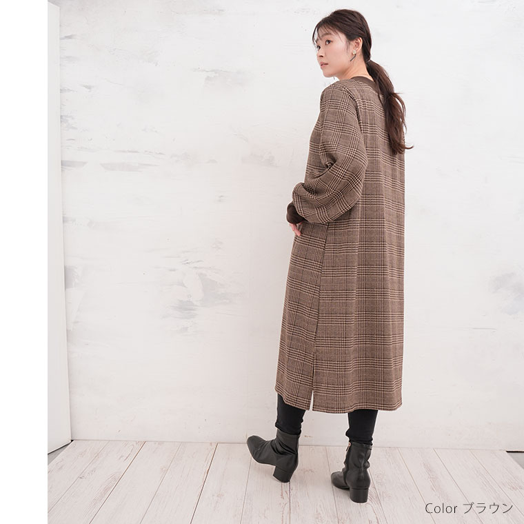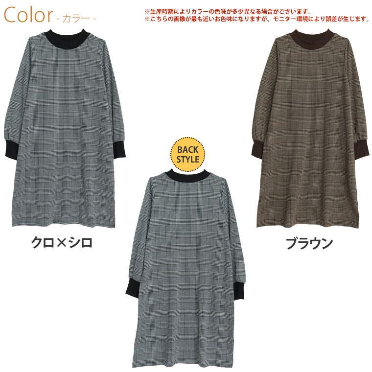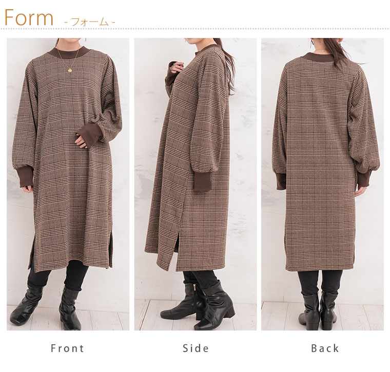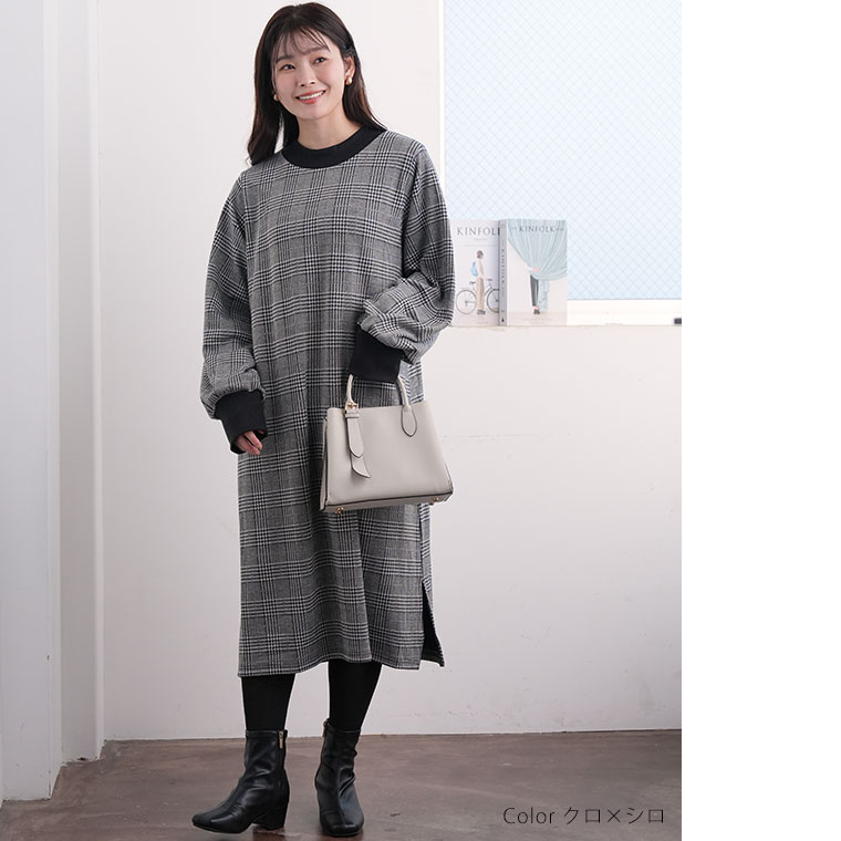 着ぶくれない裏起毛、チェック柄ワンピース。