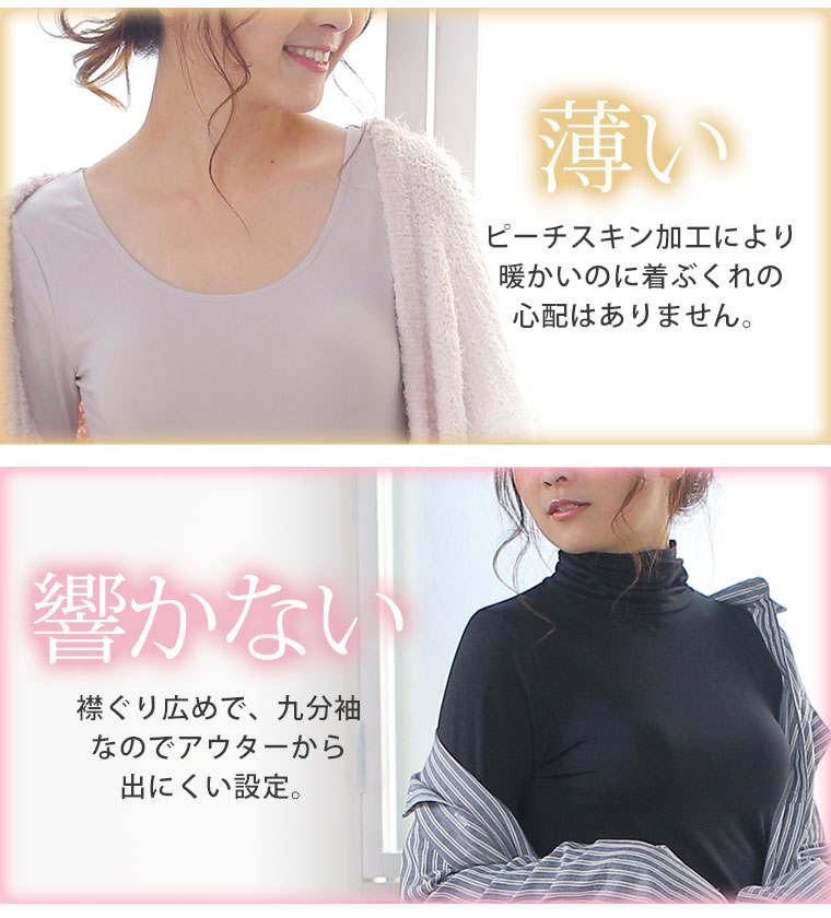 眺めの裾丈が嬉しい クルーネックとタートルネックから選べる暖かインナー