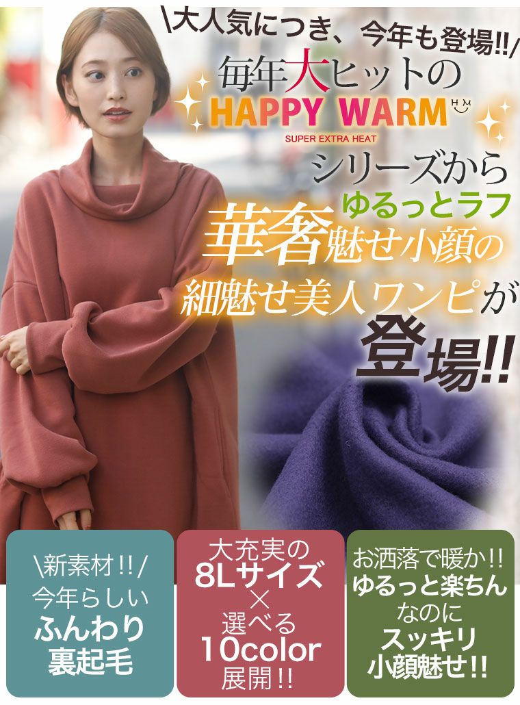 他の画像を見る オリジナル LL 3L 4L 5L 6L 7L 8L 秋 秋物 秋服 冬 冬物 冬服 ゆったり HAPPYWARM お肌に優しい嬉しい7つの機能/発熱/保温・保湿/吸水速乾!!HEAT裏起毛 すっきり華奢魅せ タートルワンピース | 大きいサイズの通販ならハッピーマリリン 価格 ¥ 2,790 税込 4.38 在庫切れ お気に入りに登録する