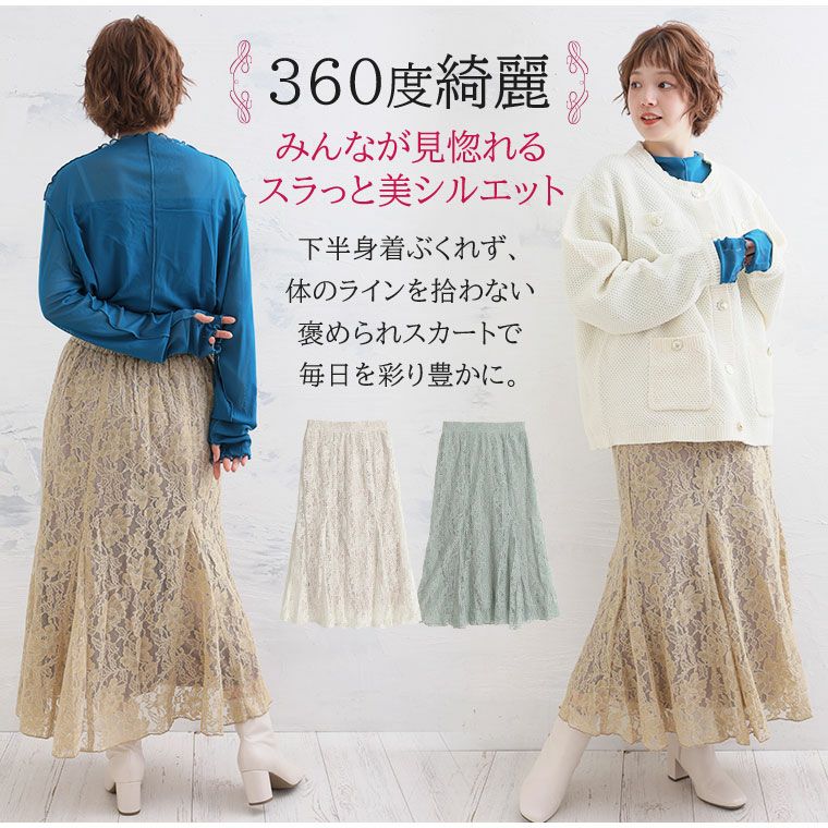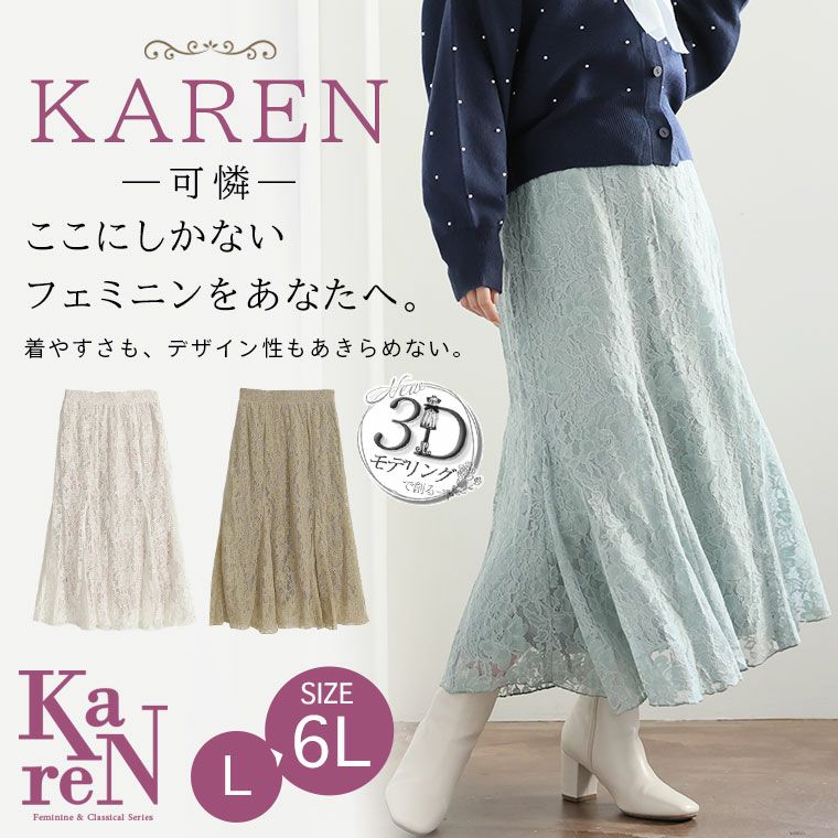他の画像を見る オリジナル ボトムス ロングスカート LL 3L 4L 5L 6L 秋 ぽっちゃり ゆったり お腹 太もも お尻 腰周り レース フェミニン 春 KAREN 3Dパターンで作った 苦手克服 レース マーメイドスカート | 大きいサイズの通販ならハッピーマリリン SALE 定価 ¥ 3,690 のところ 価格 ¥ 2,211 税込 4.31 お気に入りに登録する