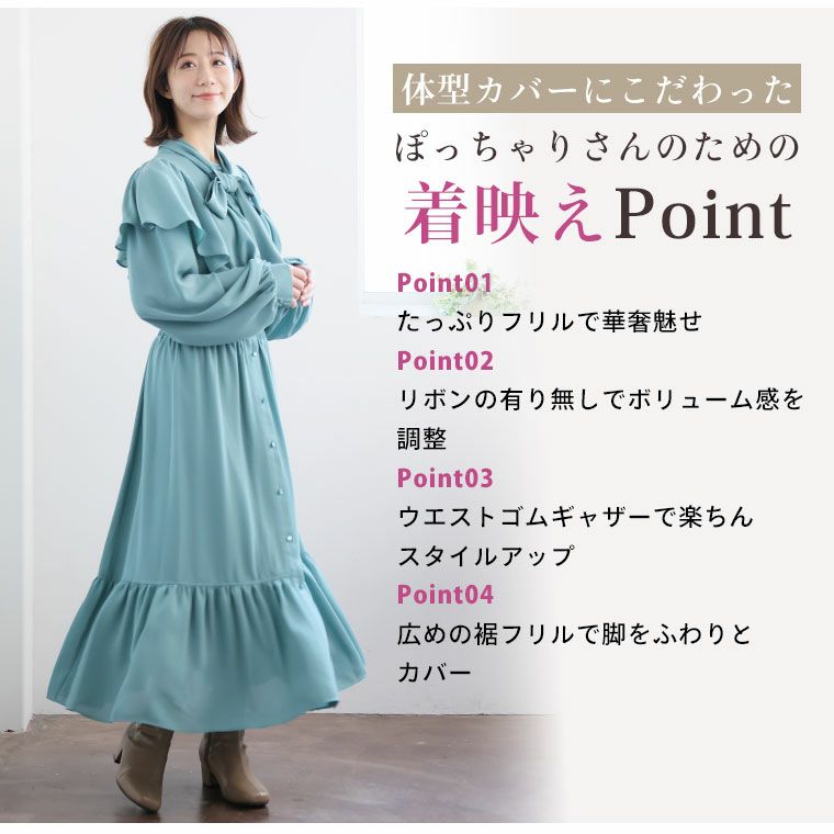 他の画像を見る オリジナル ワンピ LL 3L 4L 5L 6L 冬 冬物 冬服 ぽっちゃり ゆったり お腹 太もも 胸周り 二の腕カバー お尻 腰周り 長袖 ボウタイリボン ケープ襟 ドレス プラスサイズ KAREN フリルフリルワンピース リボン付き | 大きいサイズの通販ならハッピーマリリン 在庫特価 定価 ¥ 4,990 のところ 価格 ¥ 3,000 税込 4.85 お気に入りに登録する