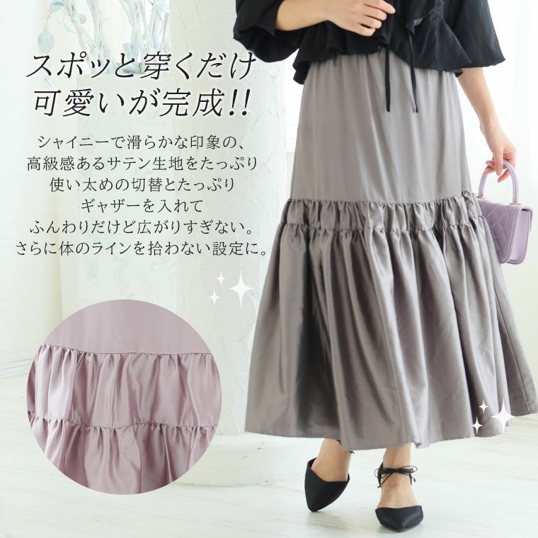 他の画像を見る オリジナル ボトムス ロングスカート LL 3L 4L 5L 6L 夏 夏物 夏服 夏用 ぽっちゃり ゆったり サテン シャイニー フェミニン おしゃれ プラスサイズ KAREN マットサテン 切替ティアードスカート | 大きいサイズの通販ならハッピーマリリン 価格 ¥ 4,990 税込 4.27 お気に入りに登録する