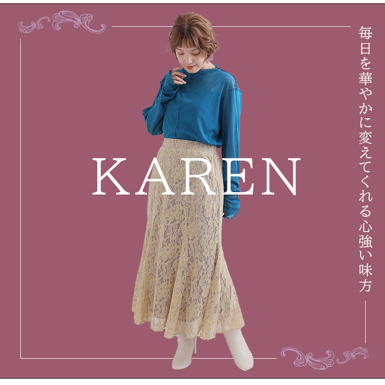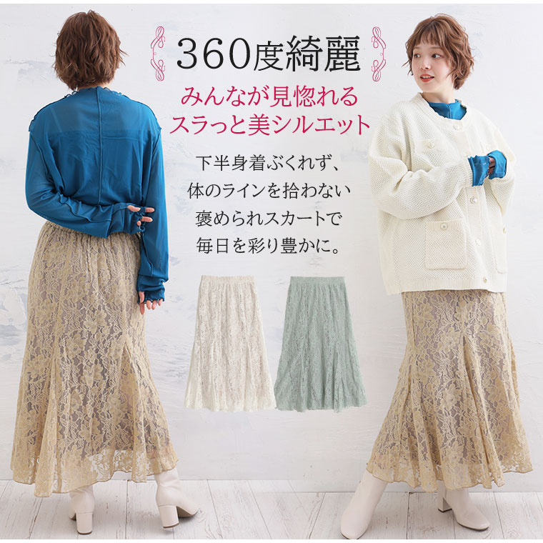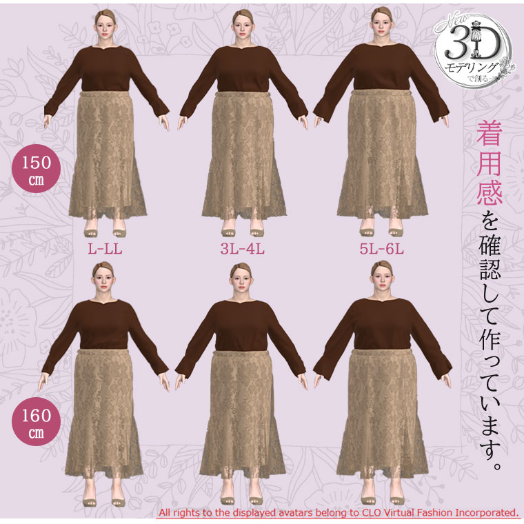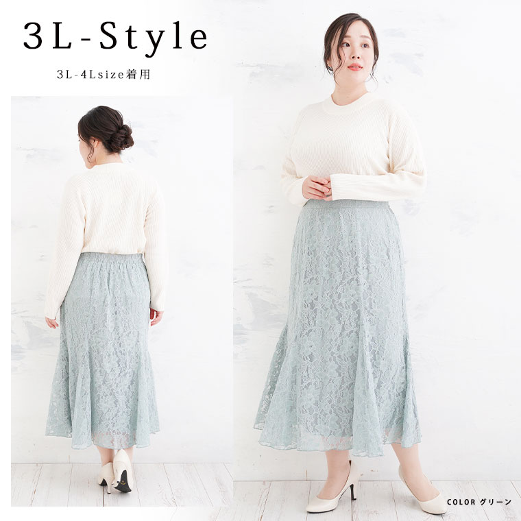オリジナル ボトムス ロングスカート LL 3L 4L 5L 6L 秋 ぽっちゃり ゆったり お腹 太もも お尻 腰周り レース フェミニン KAREN 3Dパターンで作った 苦手克服 レース マーメイドスカート