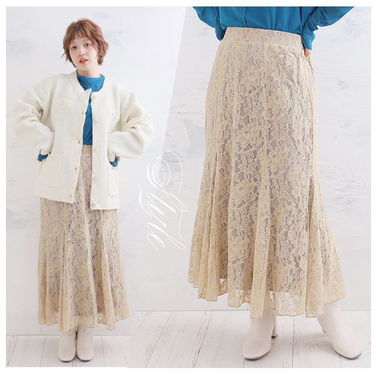 花柄レースでエレガントにコーディネート。ふわりと揺れるデザイン