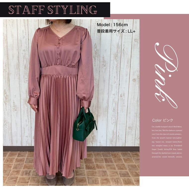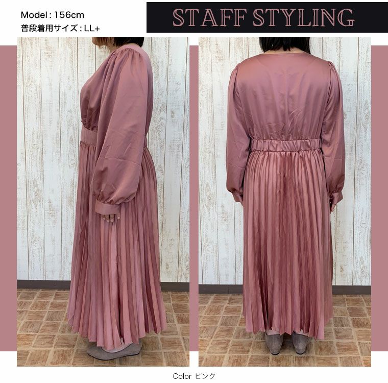 他の画像を見る オリジナル ワンピ デザインワンピ LL 3L 4L 5L 6L 冬 冬物 冬服 ぽっちゃり ゆったり お腹 太もも 胸周り 二の腕カバー お尻 腰周り 長袖 パーティ ドレス フォーマル セレモニー KAREN 肩タック プリーツワンピース | 大きいサイズの通販ならハッピーマリリン 価格 ¥ 5,990 税込 4.00 お気に入りに登録する