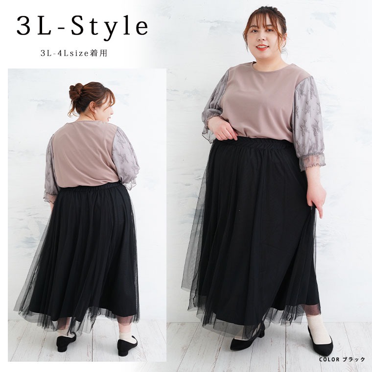 大きいサイズ ココハレシリーズ 8枚接ぎ立体パターン チュールスカート【セレモニー】