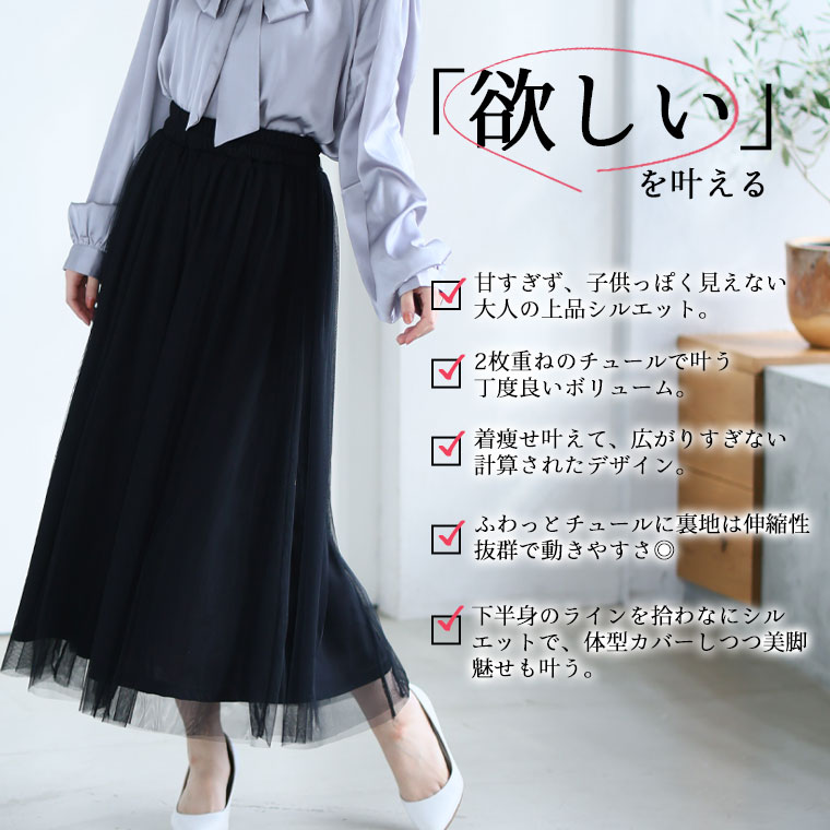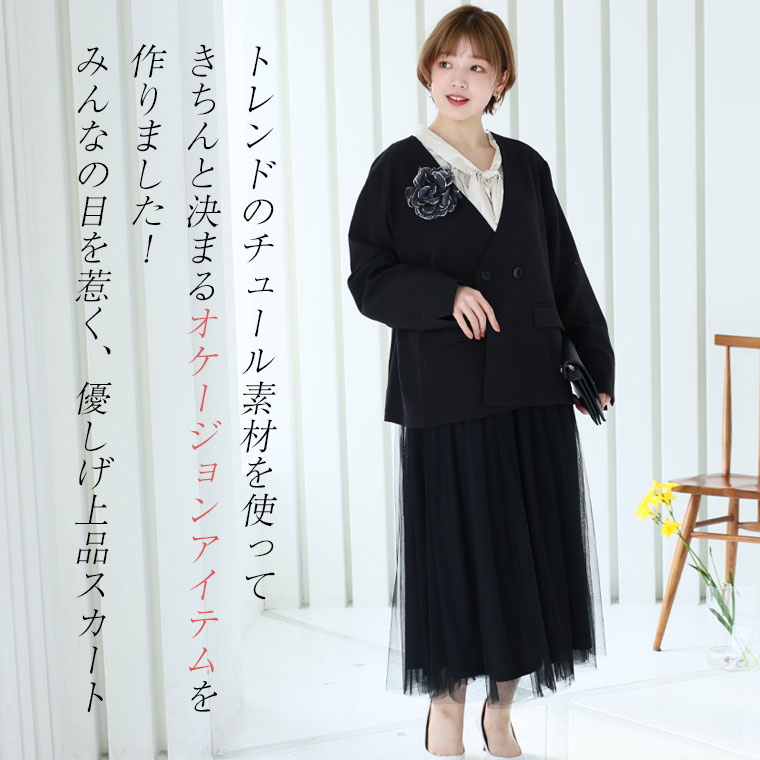 オリジナル スカート ボトムス フレアスカート LL 3L 4L 5L 6L 春 春物 春服 ぽっちゃり ゆったり お腹 太もも セレモニー オケージョン フォーマル ママ ココハレシリーズ 8枚接ぎ立体パターン チュールスカート【セレモニー】