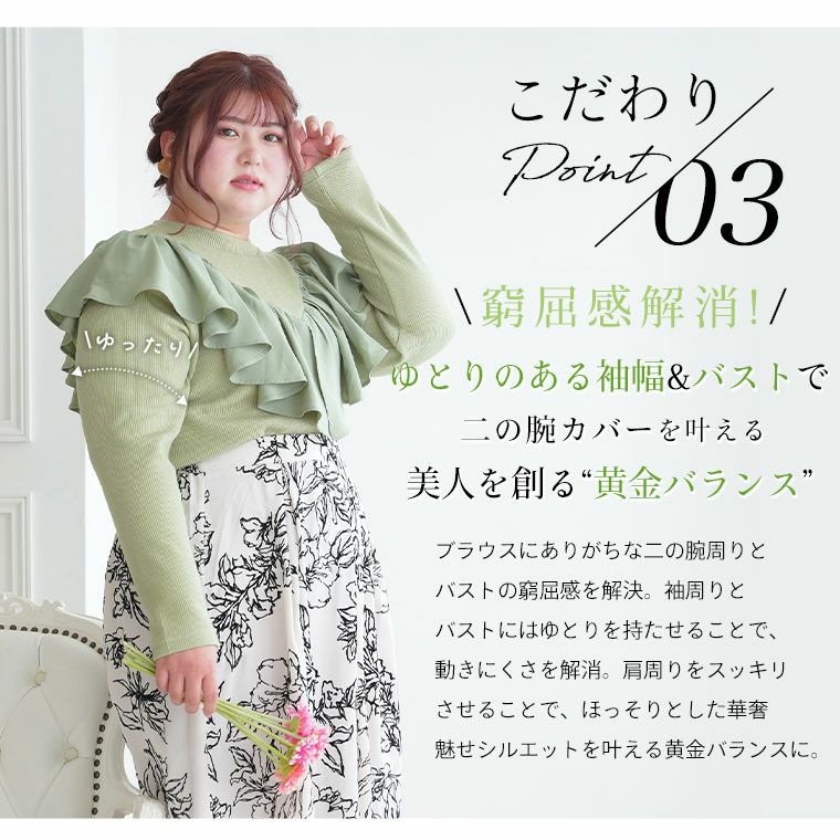 他の画像を見る オリジナル カットソー プルオーバー LL 3L 4L 5L 6L 春 春物 春服 ぽっちゃり ゆったり プラスサイズ 【ラファモプロデュース】 【れいぼんちゃん】 ほの甘フェミニン 異素材使い フリル リブニットソー トップス lafarfa | 大きいサイズの通販ならハッピーマリリン SALE 定価 ¥ 4,990 のところ 価格 ¥ 3,490 税込 5.00 お気に入りに登録する