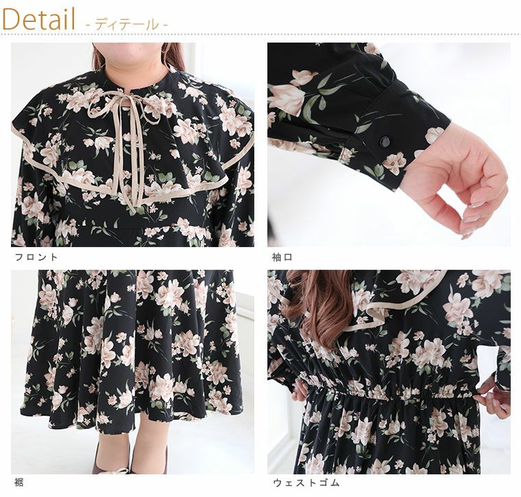 他の画像を見る オリジナル ワンピ デザインワンピ LL 3L 4L 5L 6L 秋 秋物 秋服 冬 冬物 冬服 ぽっちゃり ゆったり lafarfa コラボ きれいめ プラスサイズ 【ラファモプロデュース】 ケープ付き 花柄ワンピース (れいぼん )ラファーファ | 大きいサイズの通販ならハッピーマリリン 在庫特価 定価 ¥ 4,990 のところ 価格 ¥ 3,000 税込 4.44 お気に入りに登録する