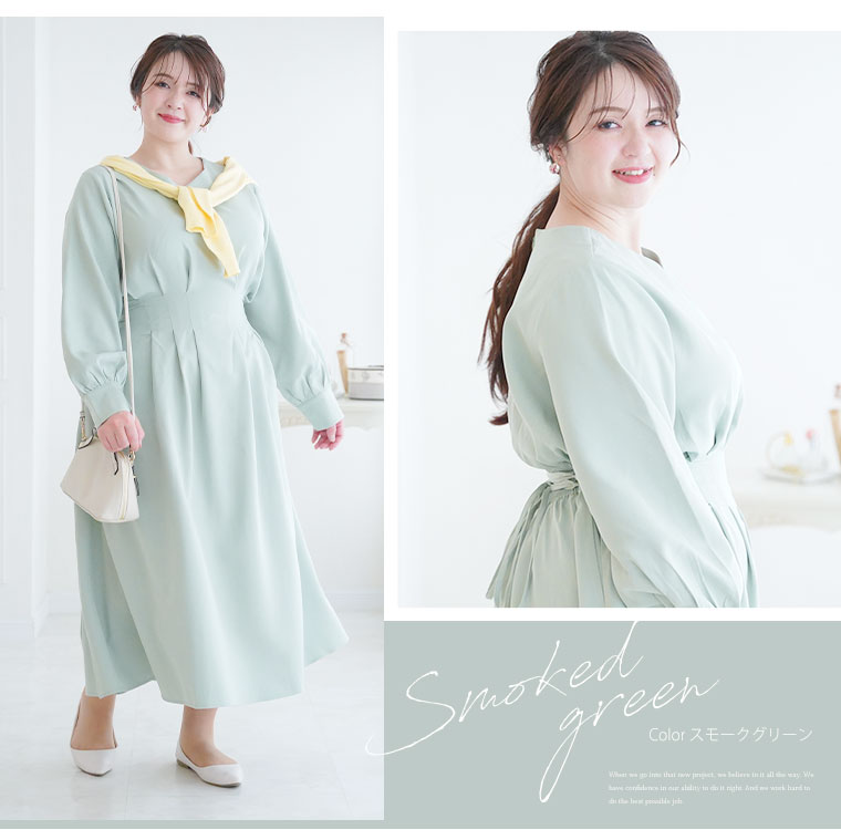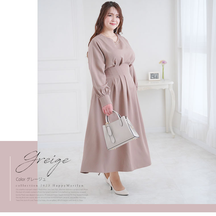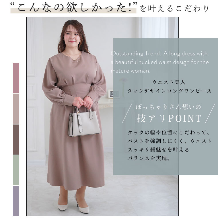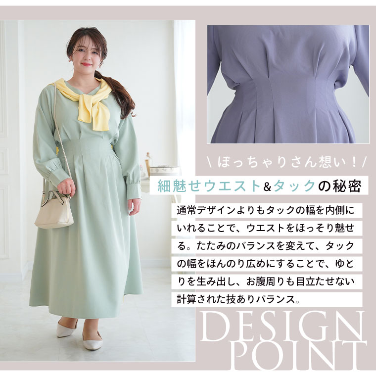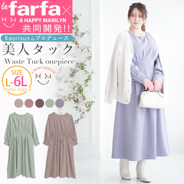 4. 大きいサイズ 【ラファモプロデュース】 【kaorisuちゃん】 ウエスト美人 タックデザイン ロングワンピース lafarfa