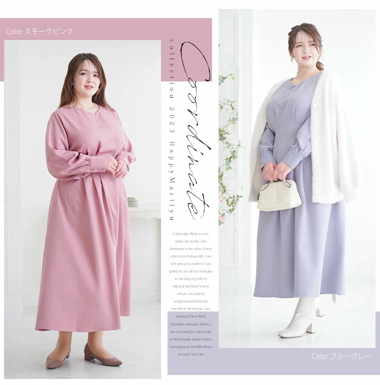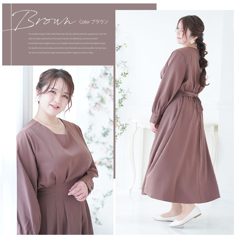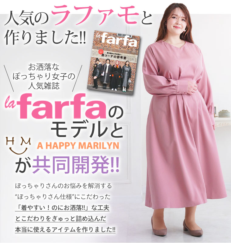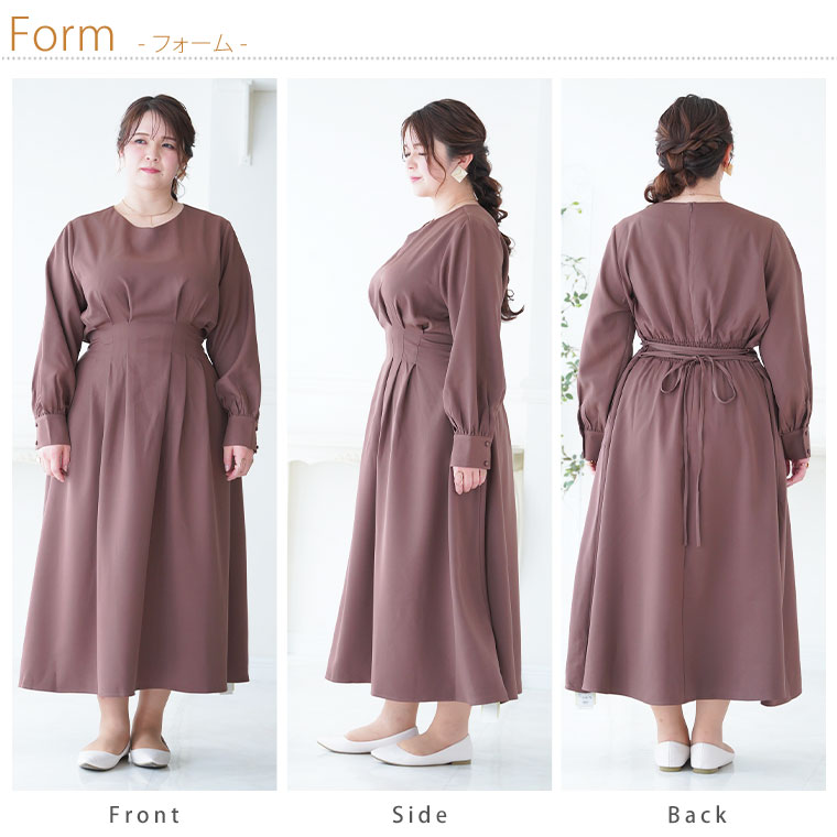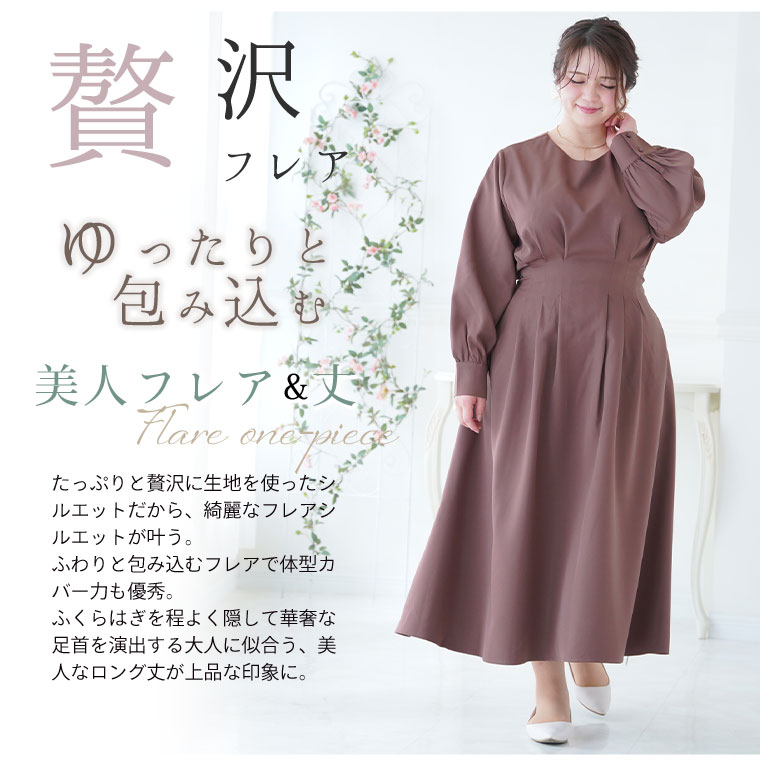 3. 大きいサイズ 【ラファモプロデュース】 【kaorisuちゃん】 ウエスト美人 タックデザイン ロングワンピース lafarfa