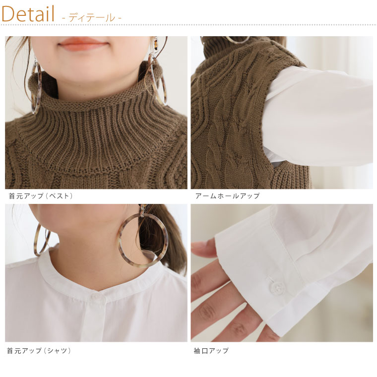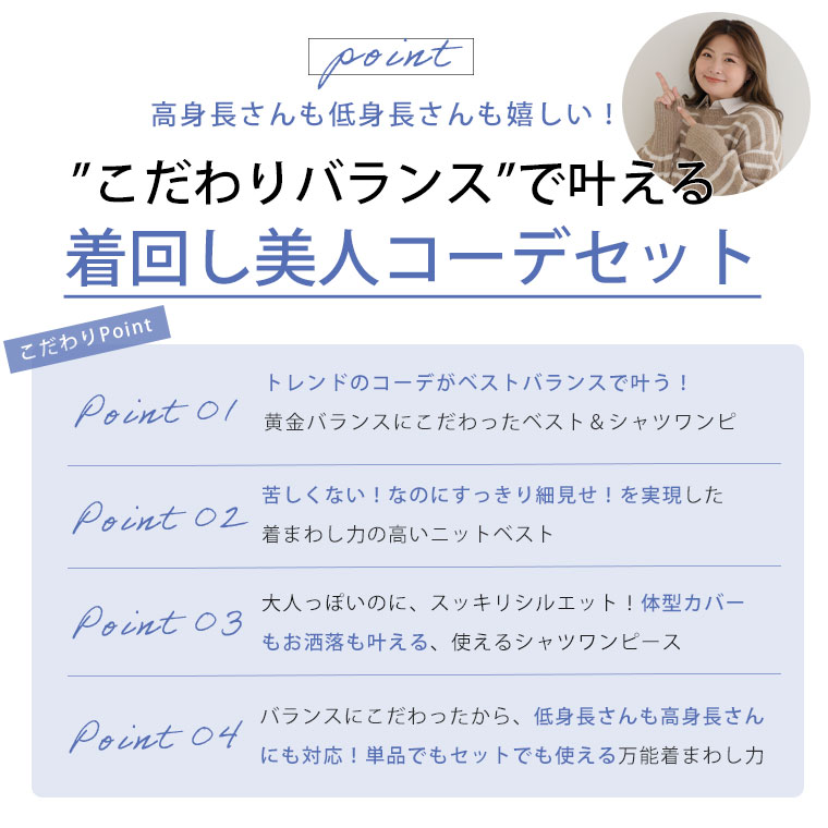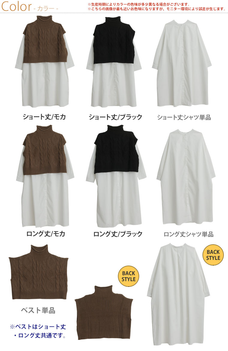 【ラファモプロデュース】 着丈が選べる ニットベスト×Aラインシャツワンピース