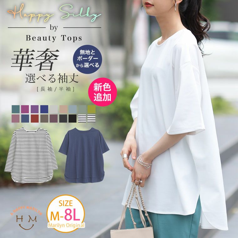 【Happy Silky】大人のための頼れるカットソー長袖と半袖選べる美人ポンチ裾ラウンドトップス