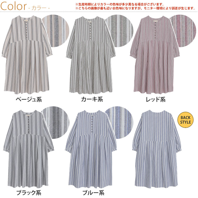 オリジナル ワンピ デザインワンピ LL 3L 4L 5L 6L 秋 秋物 秋冬 ぽっちゃり ゆったり プラスサイズ 綿100%さらり リラックス ゆったりシルエットの スッキリ柄 コットンワンピ ストライプ マルチストライプ