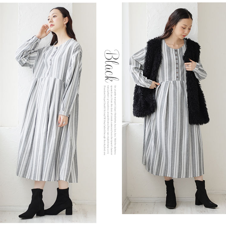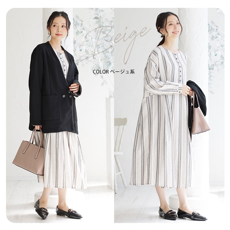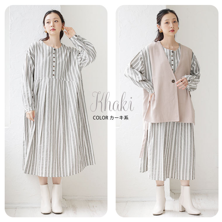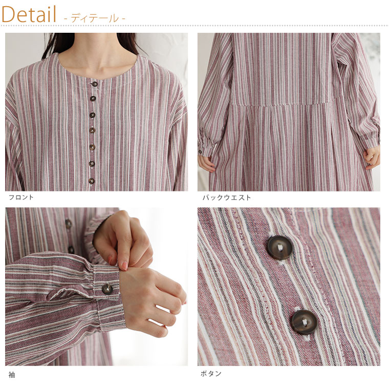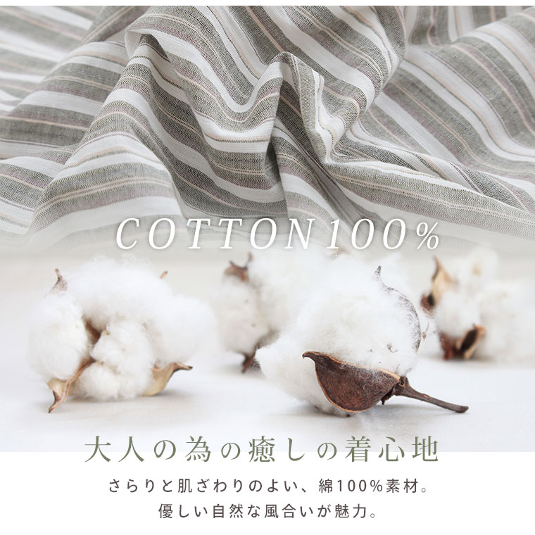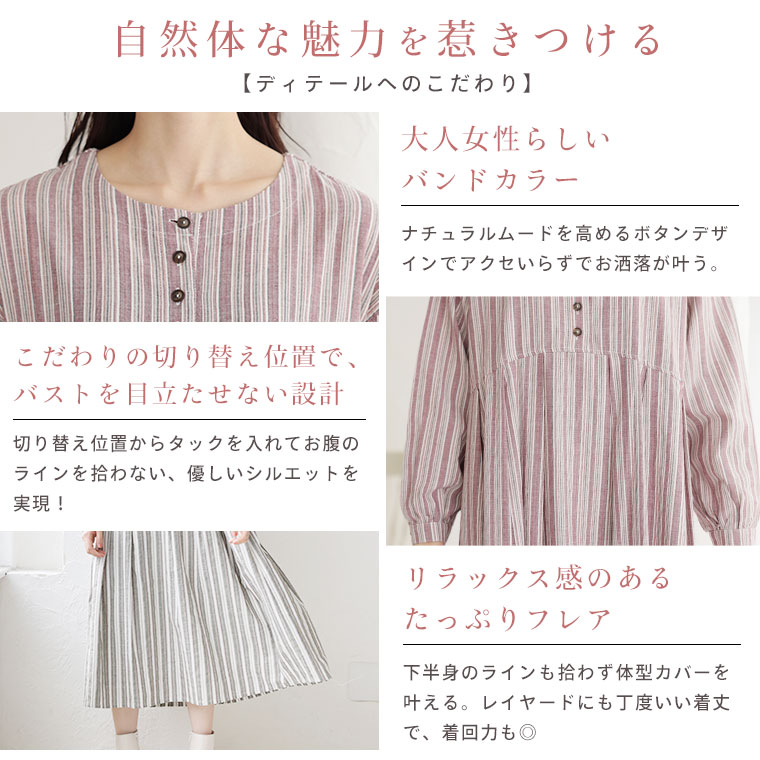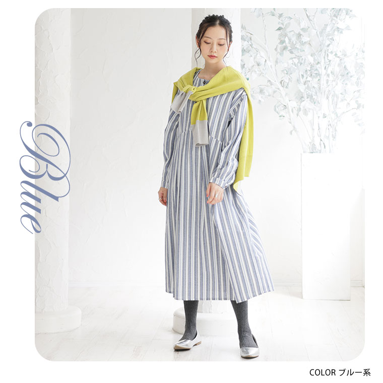 ふわりとゆれる綿100%のストライプワンピース
