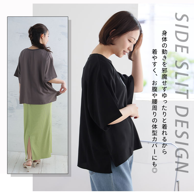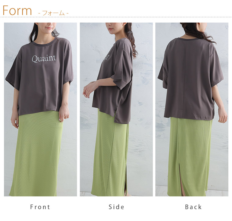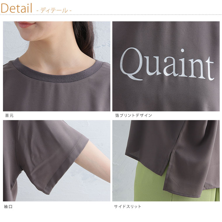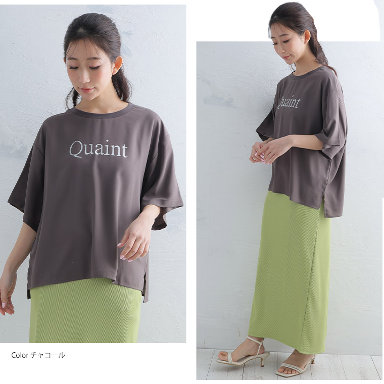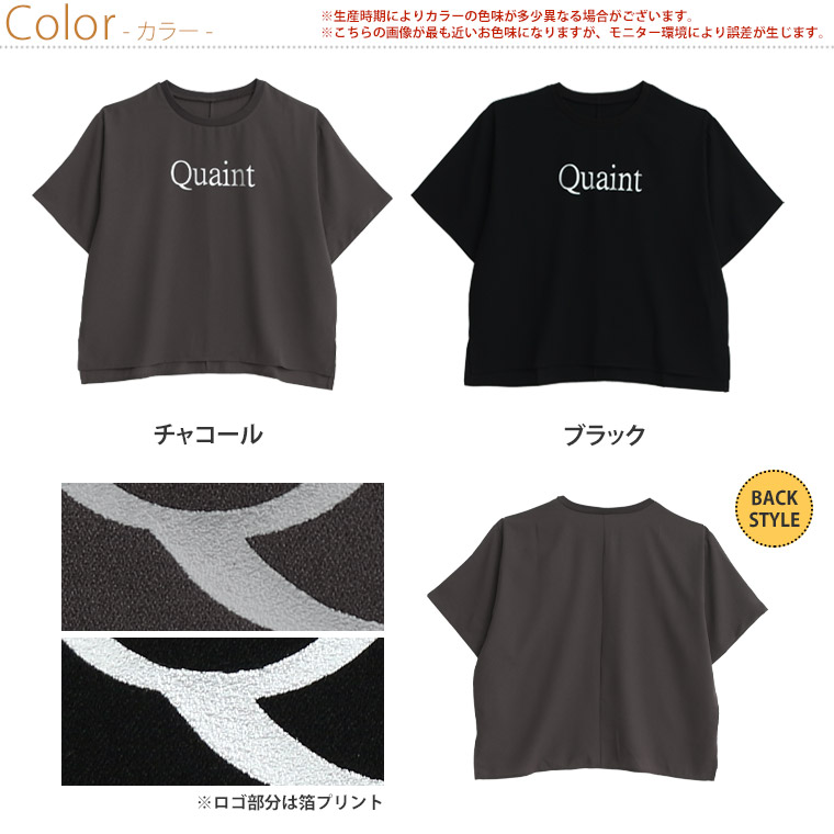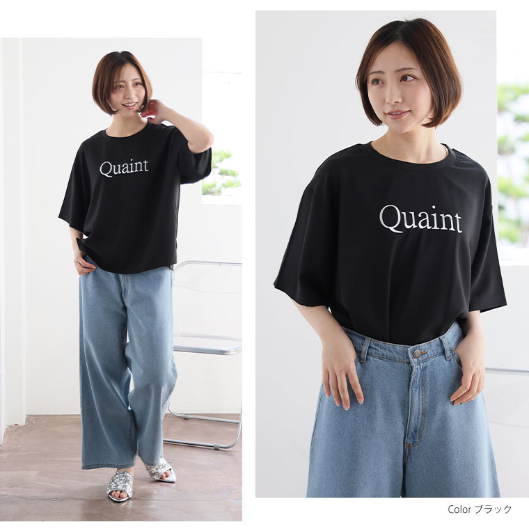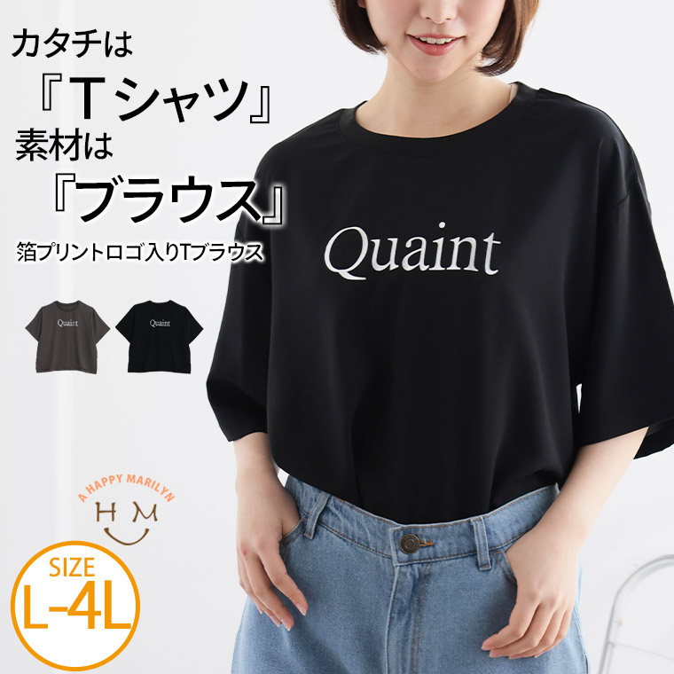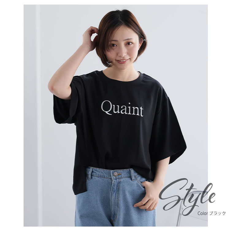 Tシャツ感覚のキレイめカジュアル 箔プリントロゴ入りTブラウス