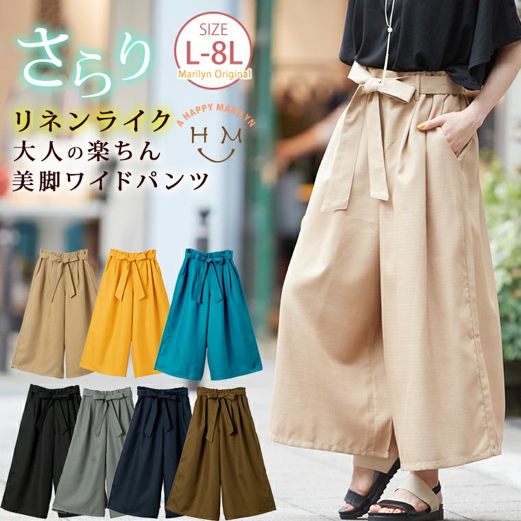 他の画像を見る オリジナル ボトムス LL 3L 4L 5L 6L 7L 8L ぽっちゃり ゆったり かわいい おしゃれ カジュアル ナチュラル ウエストリボンベルト付き 麻ライク合織 タック入り ロング丈 ワンドパンツ | 大きいサイズの通販ならハッピーマリリン 価格 ¥ 2,536 税込 4.00 在庫切れ お気に入りに登録する