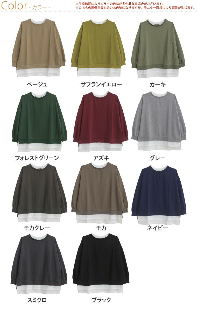 他の画像を見る オリジナル トレーナー LL 3L 4L 5L 6L 7L 8L 秋 秋物 秋冬 ぽっちゃり ゆったり 可愛い お腹 胸周り 二の腕カバー 腰周り 長袖 ゆるっと楽ちん! 着ぶくれ回避の 重ね着風 ミニ裏毛 プルオーバー | 大きいサイズの通販ならハッピーマリリン 価格 ¥ 2,190 税込 4.85 在庫切れ お気に入りに登録する