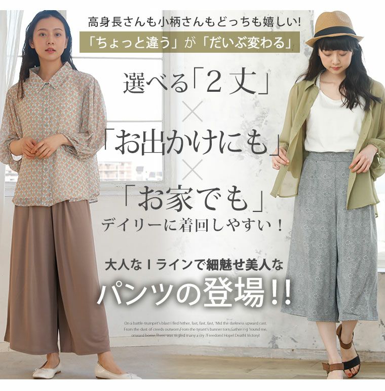 他の画像を見る ボトムス LL 3L 4L 5L 6L 夏 夏物 夏服 夏用 ぽっちゃり ゆったり お腹 太もも お尻 腰周り 【ストレッチ】【ウェストゴム】 身長別に選べる2丈 無地 と 柄 で選べるひんやり 接触冷感 楽ちん とろみカットソー ワイドパンツ | 大きいサイズの通販ならハッピーマリリン 小柄さん丈有 価格 ¥ 1,690 税込 4.17 在庫切れ お気に入りに登録する