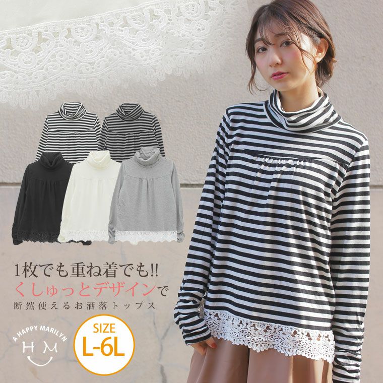 他の画像を見る トップス LL 3L 4L 5L 6L 春 春物 春服 ぽっちゃり ゆったり かわいい おしゃれ カジュアル ナチュラル 無地とボーダー 裾レース付き シャーリングネック カットソー 長袖 プルオーバー | 大きいサイズの通販ならハッピーマリリン 価格 ¥ 1,721 税込 4.50 在庫切れ お気に入りに登録する
