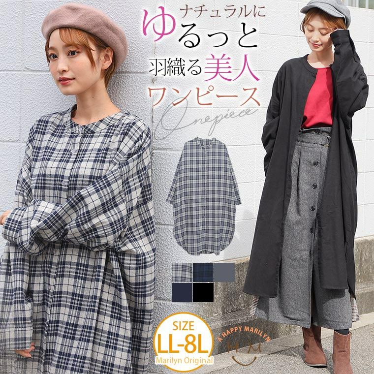 他の画像を見る オリジナル ワンピ シャツワンピ LL 3L 4L 5L 6L 7L 8L 秋 秋物 秋服 冬 冬物 冬服 ぽっちゃり ゆったり 胸周り 二の腕カバー かわいい 無地 と チェック から選べる ネルシャツ ワンピース | 大きいサイズの通販ならハッピーマリリン 価格 ¥ 2,990 税込 3.81 在庫切れ お気に入りに登録する