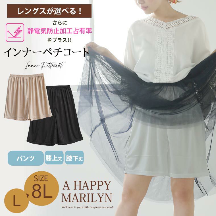 他の画像を見る オリジナル ペチ インナー LL 3L 4L 5L 6L 7L 8L 膝下 膝上 ショート ロング 股ズレ防止 透け防止 ペチコート 透け対策 はりつきにくい ペチパン ぺチパン 静電気防止加工! 丈が選べる ぺチパンツ 【メール便可1】 HIT100 価格 ¥ 1,190 税込 4.30 お気に入りに登録する