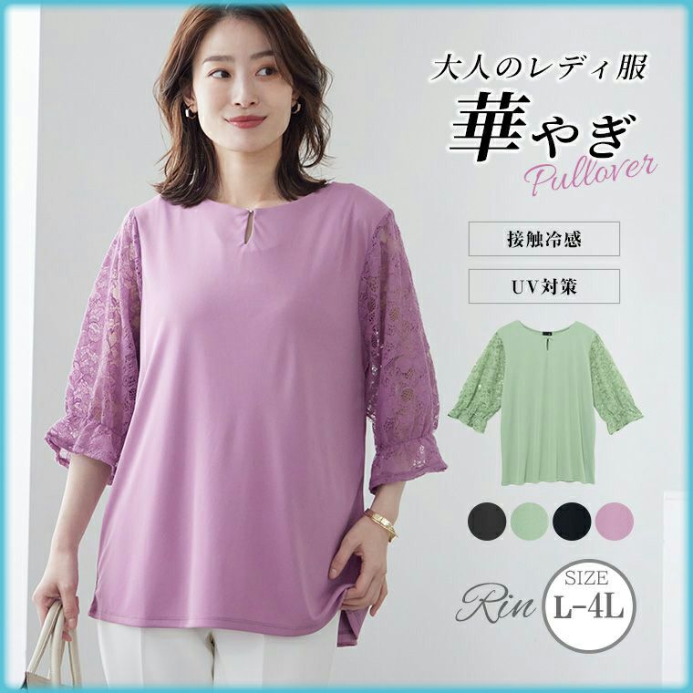 他の画像を見る LL 3L 4L 夏 夏物 夏服 夏用 ぽっちゃり リン きれいめ 高見え プラスサイズ Rin 綺麗を叶える嬉しい機能 接触冷感 UV ビジュー付き 袖レース カットソー プルオーバー 大人 オフィス ビジネス 通勤 ママ | 大きいサイズの通販ならハッピーマリリン SALE 定価 ¥ 2,990 のところ 価格 ¥ 2,541 税込 お気に入りに登録する