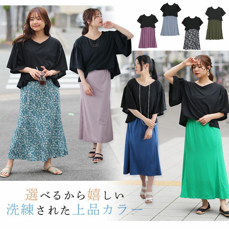 他の画像を見る オリジナル ワンピ LL 3L 4L 5L 6L お腹 腰周り 接触冷感 フレア袖 新色追加!! 【着やせアイテム】 1枚で着痩せ! 夏でも快適4つの機能付き マーメイドシルエット ドッキングワンピース | 大きいサイズの通販ならハッピーマリリン 小柄さん丈有 価格 ¥ 3,490 税込 3.86 お気に入りに登録する