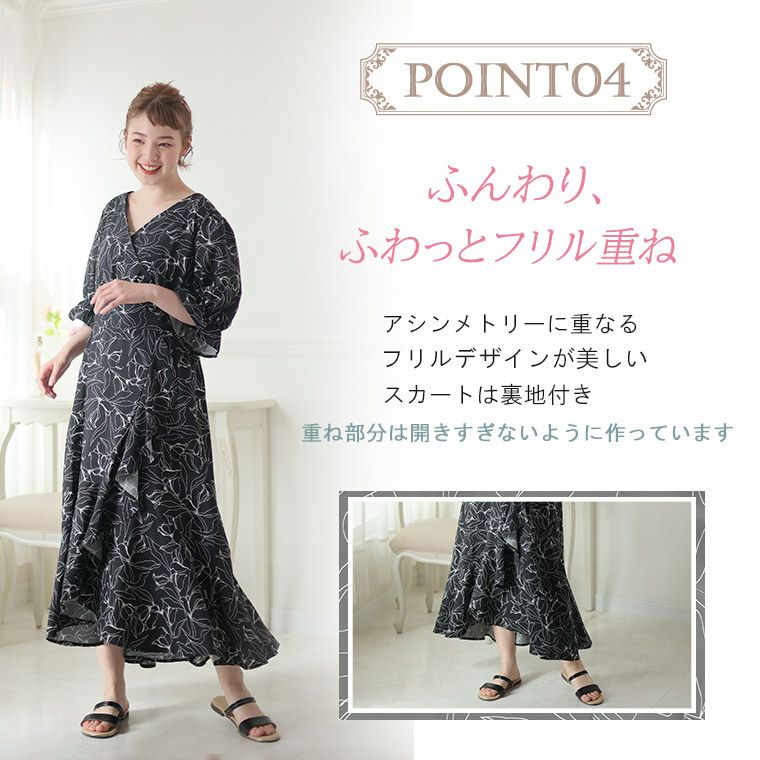 他の画像を見る オリジナル ワンピ LL 3L 4L 5L 6L 夏 夏物 夏服 夏用 ぽっちゃり ゆったり お腹 太もも 胸周り 二の腕カバー お尻 腰周り 半袖 フェミニン クラシカル 可憐 春 KAREN カシュクール&フリル アシメスカートワンピース | 大きいサイズの通販ならハッピーマリリン SALE 定価 ¥ 4,990 のところ 価格 ¥ 4,240 税込 3.71 お気に入りに登録する
