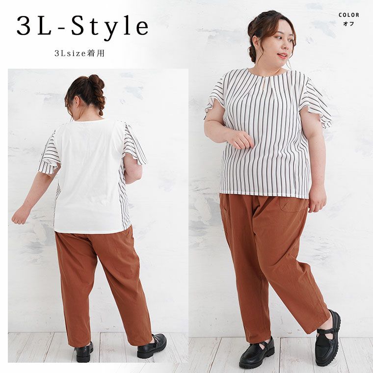 他の画像を見る 夏トップス LL 3L 4L 夏 夏物 夏服 夏用 ぽっちゃり ゆったり リン キレイめ 上品 オフィスカジュアル プラスサイズ 春 Rin なめらかで心地良い 洗練 ストライプ パーツ付き 前身布帛 プルオーバー カットソー ブラウス | 大きいサイズの通販ならハッピーマリリン SALE 定価 ¥ 2,990 のところ 価格 ¥ 2,541 税込 お気に入りに登録する